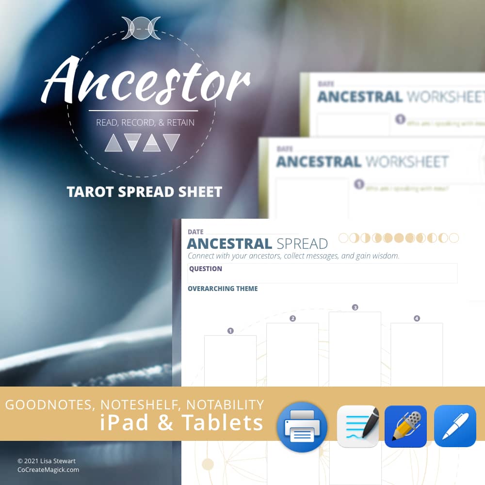Ancestor Digital Daily Reading Tarot Spread Sheet Journal Workbook to Manifest PDF